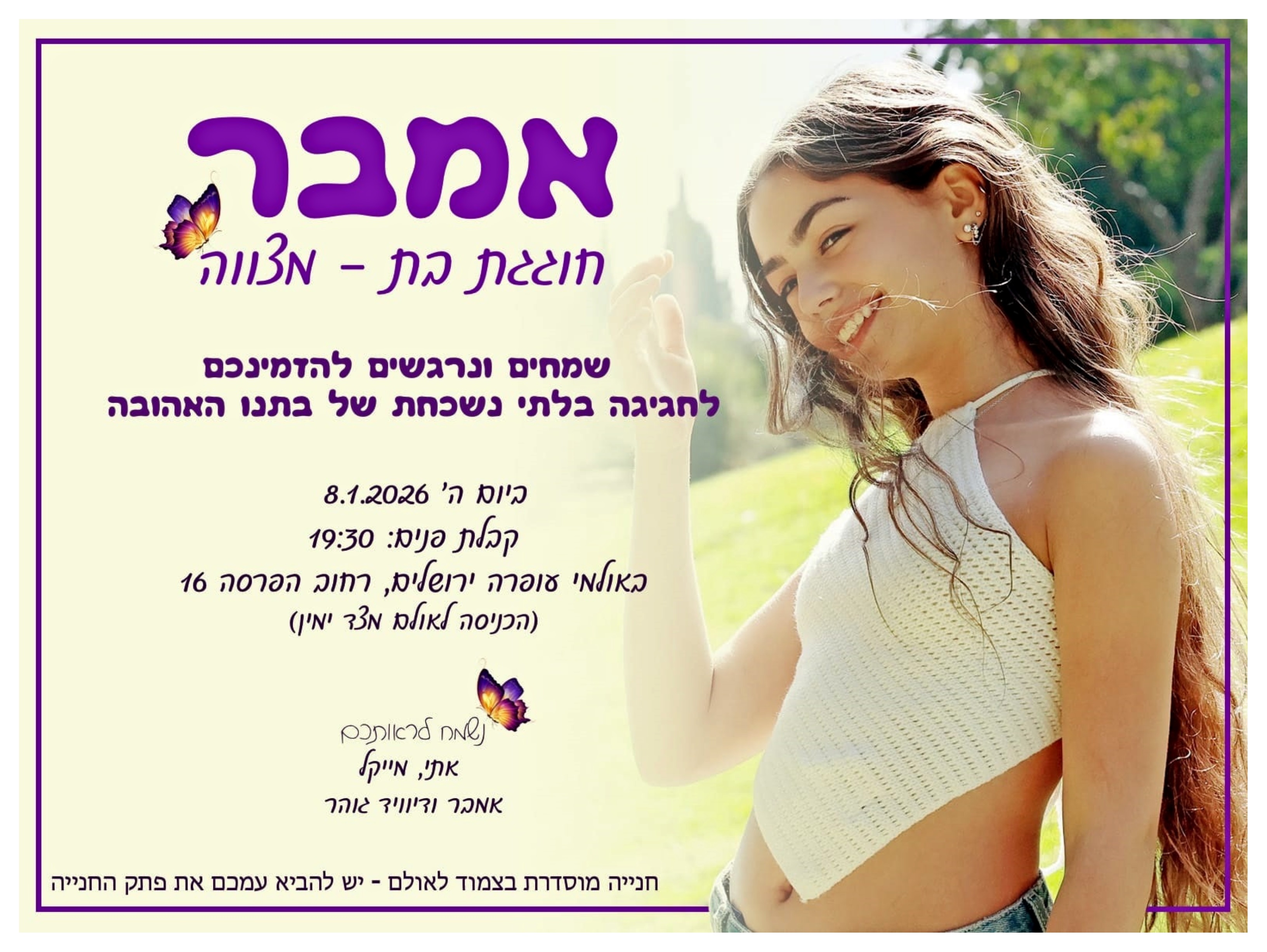 מעוניינים גם אתם בהזמנה דיגיטלית לבת מצווה? התקשרו אלינו 03-5270527 או לחצו כאן >>
